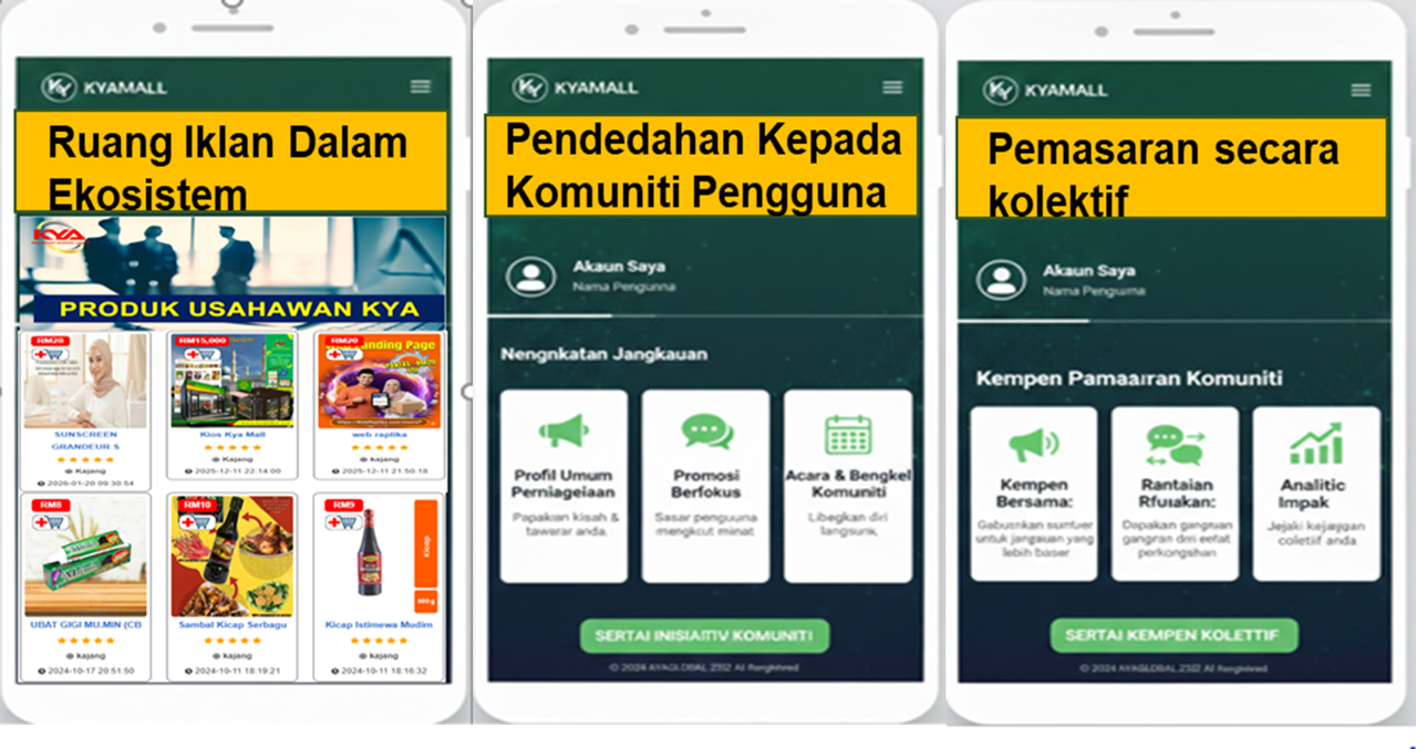 Kya Mall Global adalah platform digital inovatif yang direka khusus untuk mengumpulkan usahawan kecil dan sederhana (IKS) di Malaysia di bawah satu bumbung. Platform ini menawarkan ekosistem perniagaan lengkap yang merangkumi: